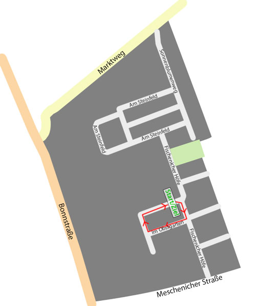 Der Bambini Lauf wird eine Runde im Uhrzeigersinn um den Obstgarten sein.
